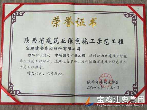 2018年1月26日在西安召開了陜西省建筑業(yè)協(xié)會(huì)第六屆二次理事會(huì)議,我公司承建的科研生產(chǎn)試驗(yàn)大樓、寶雞蟠龍新居SF05標(biāo)段,高新五路明星佳苑、新建路市場(chǎng)改造項(xiàng)目(民豐國(guó)際)、中聯(lián)國(guó)際廣場(chǎng)項(xiàng)目,在2017年度綠色施工評(píng)審過程中,達(dá)到優(yōu)良水平,被授予陜西省建筑業(yè)綠色施工示范工程稱號(hào)。 此次榮譽(yù)的獲得離不開公司各職能部室的指導(dǎo)與項(xiàng)目部的辛勤努力,項(xiàng)目部能緊跟建筑行業(yè)發(fā)展的大方向,不斷加強(qiáng)綠色施工過程管理的學(xué)習(xí),在施工過程中圍繞著“四節(jié)一環(huán)保”理念,堅(jiān)持走節(jié)能降耗,增效降本,可持續(xù)發(fā)展的施工道路,最終取得了可喜的成績(jī)。 公司綠色施工整體水平近年來得到顯著提高,希望各項(xiàng)目部在2018年的施工過程中,以文明施工,綠色施工標(biāo)準(zhǔn)嚴(yán)格要求自己,力爭(zhēng)在施工管理方面取得更高的成績(jī)。