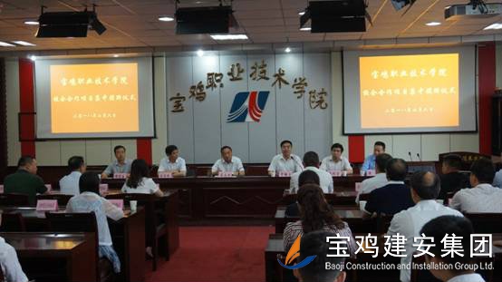 揭牌儀式上寶雞職業(yè)技術學院書記蘇永興在致辭中指出,學院要以這次揭牌儀式為新的起點,以戰(zhàn)略眼光和務實舉措,堅持做到保持定力,堅持深化校企合作不動搖,敢于擔當,堅持服務地方經濟不動搖,追求卓越,堅持“兩個一流”建設不動搖,在培養(yǎng)“大國工匠”、助力企業(yè)發(fā)展、服務地方經濟的火熱實踐中再創(chuàng)新的輝煌。 在校企戰(zhàn)略合作就業(yè)基地授牌儀式上,寶職院蘇書記向全國各地參會的20余家企業(yè)代表,就目前人力資源市場和教育體制的發(fā)展做了客觀詳盡的分析,同時對校企戰(zhàn)略合作作為寶雞建安集團和寶雞真信工程檢測公司培養(yǎng)掌握專業(yè)工作技能和基層崗位管理的人才,通過崗位培訓、定向委培、開設例如BIM,裝配式建筑技術等,特色課程的學習,并給予集團員工和學生提供崗位培訓和實習崗位,提高培訓人員的理論、實踐動手能力和工作技能,增強學生的就業(yè)能力,實現企業(yè)、學生和學院之間的三贏。
