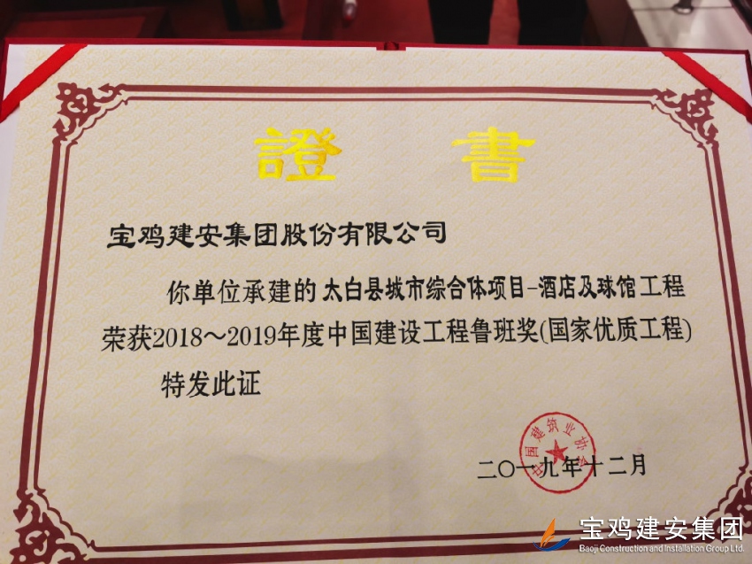 睽違三十載,喜開(kāi)二度梅。12月10日,從北京會(huì)議中心傳來(lái)喜訊,由寶雞建安集團(tuán)承建的太白縣城市綜合體項(xiàng)目—酒店及球館工程,在全國(guó)建筑行業(yè)精品工程最高獎(jiǎng)項(xiàng)大比拼的激烈角逐中,力挫群雄,脫穎而出,最終摘得2018--2019年度中國(guó)建設(shè)工程魯班獎(jiǎng)(國(guó)家優(yōu)質(zhì)工程)桂冠,這也使寶雞建安集團(tuán)成為繼法門寺重建工程獲得寶雞第一個(gè)建筑魯班獎(jiǎng)后,時(shí)隔近30年再次奪得“魯班獎(jiǎng)”的企業(yè),從而書(shū)寫(xiě)了建筑行業(yè)頂級(jí)獎(jiǎng)“梅開(kāi)二度”的傳奇!