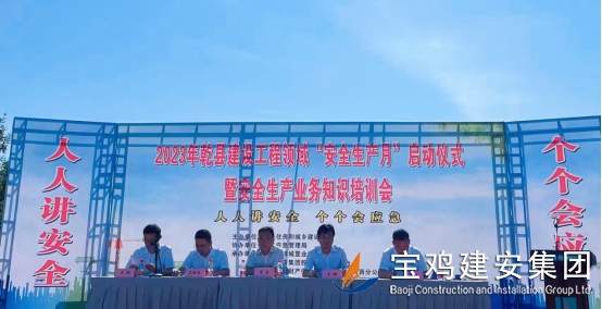 由乾縣住房和城鄉(xiāng)建設(shè)局主辦、乾縣應(yīng)急管理局協(xié)辦、咸陽(yáng)萬(wàn)洋城置業(yè)有限公司和寶雞建安集團(tuán)股份有限公司承辦的“2023年乾縣建設(shè)工程領(lǐng)域‘安全生產(chǎn)月’啟動(dòng)儀式暨安全生產(chǎn)業(yè)務(wù)知識(shí)培訓(xùn)會(huì)”于近期順利舉行。