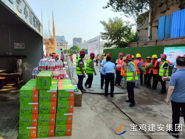 7月18日上午,寶雞高新區(qū)管委會(huì)黨工委委員、管委會(huì)副主任楊海翔,高新區(qū)總工會(huì)主席李廣強(qiáng),區(qū)教育系統(tǒng)黨委書(shū)記、教育體育局局長(zhǎng)唐宏,副局長(zhǎng)劉輝等一行領(lǐng)導(dǎo),前往建安集團(tuán)承建的寶雞高新第三幼兒園建設(shè)項(xiàng)目工地,走訪慰問(wèn)一線員工,開(kāi)展“夏送清涼”活動(dòng)。