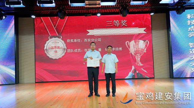 為激勵先進、樹立榜樣,會議第二項由質(zhì)量部經(jīng)理韓宇龍宣讀了《關(guān)于表彰2022下半年至2023上半年科技成果獎勵、科技創(chuàng)新先進單位、BIM推廣應(yīng)用先進單位的決定》并主持頒獎。2022下半年~2023上半年度共獲得省級QC一類成果3項,省級QC二類成果5項,省級QC三類成果4項,實用新型專利17項,各類BIM獎項7項,并授予第十六分公司、第十五項目經(jīng)理部、第四分公司為科技創(chuàng)新先進單位榮譽,授予西安分公司為BIM推廣應(yīng)用先進單位榮譽??偨?jīng)理胥永寧及公司相關(guān)領(lǐng)導為獲獎單位頒發(fā)了獎勵。