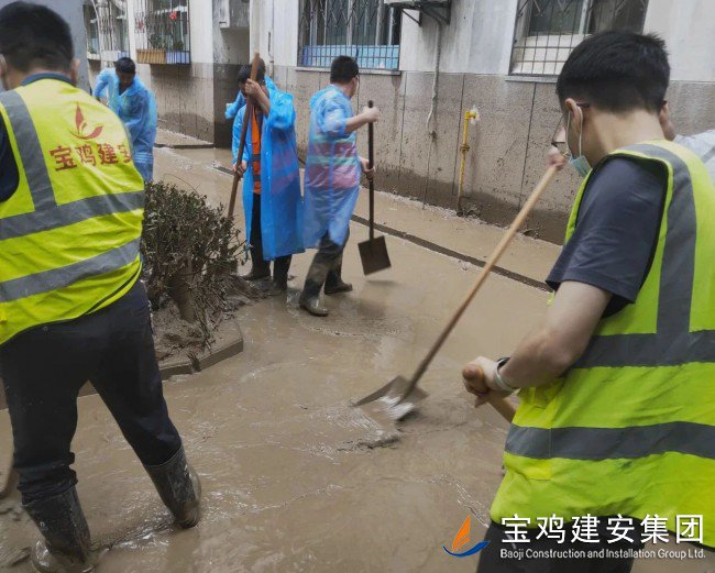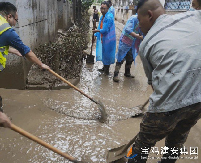 災(zāi)情來臨,義無反顧;災(zāi)后清淤,勇挑重?fù)?dān)?!昂樗淹耍覀儾煌恕?,寶雞建安集團(tuán)洪災(zāi)重建小分隊逆行風(fēng)雨中,以實際行動踐行錚錚誓言,在重建家園的大愛隊伍中,為渭濱區(qū)一方群眾筑牢了一道安全堤壩!