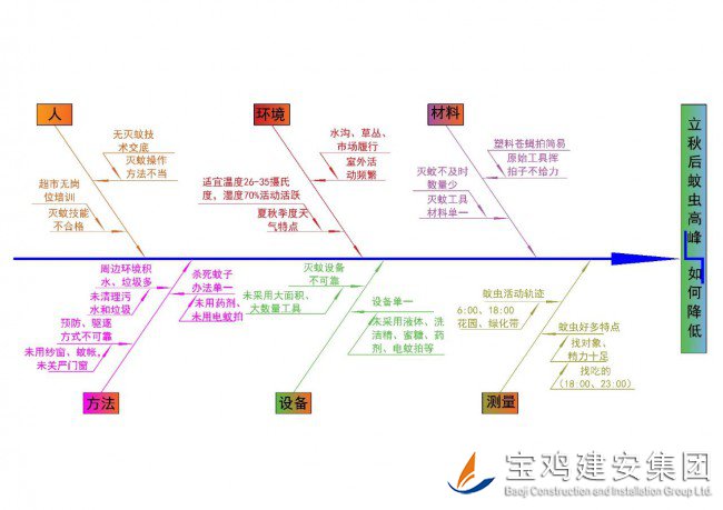 上海大潤發(fā)超市的一位清管員浦賽紅,干了一件有點(diǎn)雞毛蒜皮但也算不上驚天動(dòng)地的大事!滅蚊整整13年,研究出一套“蚊子兵書”,一年不同季節(jié),一天不同時(shí)間段,蚊子的生活習(xí)性、活動(dòng)范圍、滅殺招數(shù),掌握得明明白白,有她在的店,夏天光腿進(jìn)去站上半小時(shí),都沒有一只蚊子來叮咬。為此,我們對(duì)這篇讓1.8億人贊嘆的報(bào)道做了深入研讀,利用“頭腦風(fēng)暴法”,集體展開討論,充分發(fā)揚(yáng)民主,各抒己見,集思廣益,全面分析,每個(gè)人發(fā)表觀點(diǎn)與感想,我們都大受震撼。卻發(fā)現(xiàn)了一個(gè)不爭的事實(shí)!掌握和運(yùn)用行之有效的統(tǒng)計(jì)方法,提高工作效率。這位清管員其實(shí)在不經(jīng)意間運(yùn)用了一種科學(xué)的統(tǒng)計(jì)方法:因果圖法!見下圖: